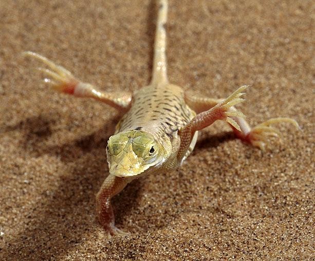 Dans les villes, l’atmosphère est moins tendue. Au supermarché, vous trouverez des saucisses d’oryx et des pommes de terre en abondance (la Namibie est une ancienne colonie allemande). Sur le parking, la présence d’hommes armés de kalachnikovs devrait vous rassurer. Un civil à la démarche chaloupée vous indique un emplacement où vous garer. Jusque-là pas de merles anxieux7 (Meroles anchietae est un lézard des sables endémique du désert du Namib qui, lorsque la température dépasse les 40°C, exécute une danse thermorégulatrice consistant à élever alternativement chacune de ses pattes ; au petit matin, pour étancher sa soif, Meroles anchietae lèche les crêtes des dunes où les brouillards viennent se percher durant la nuit).