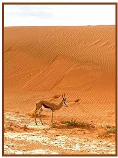 12. springbok : antilope sauteuse d’Afrique australe dont le nom afrikaans signifie : « spring » (qui saute) et « bok » (bouc). Cette namibique est la première dauphine de l’oryx. C’est le seul ongulé de Namibie à ne pas être un pléonasme. ↩︎