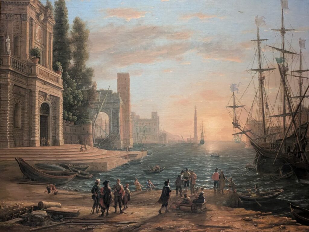 Le discours officiel nous dit que ce tableau intitulé « Un port maritime » a été peint en 1644 par Claude (1604-1682).