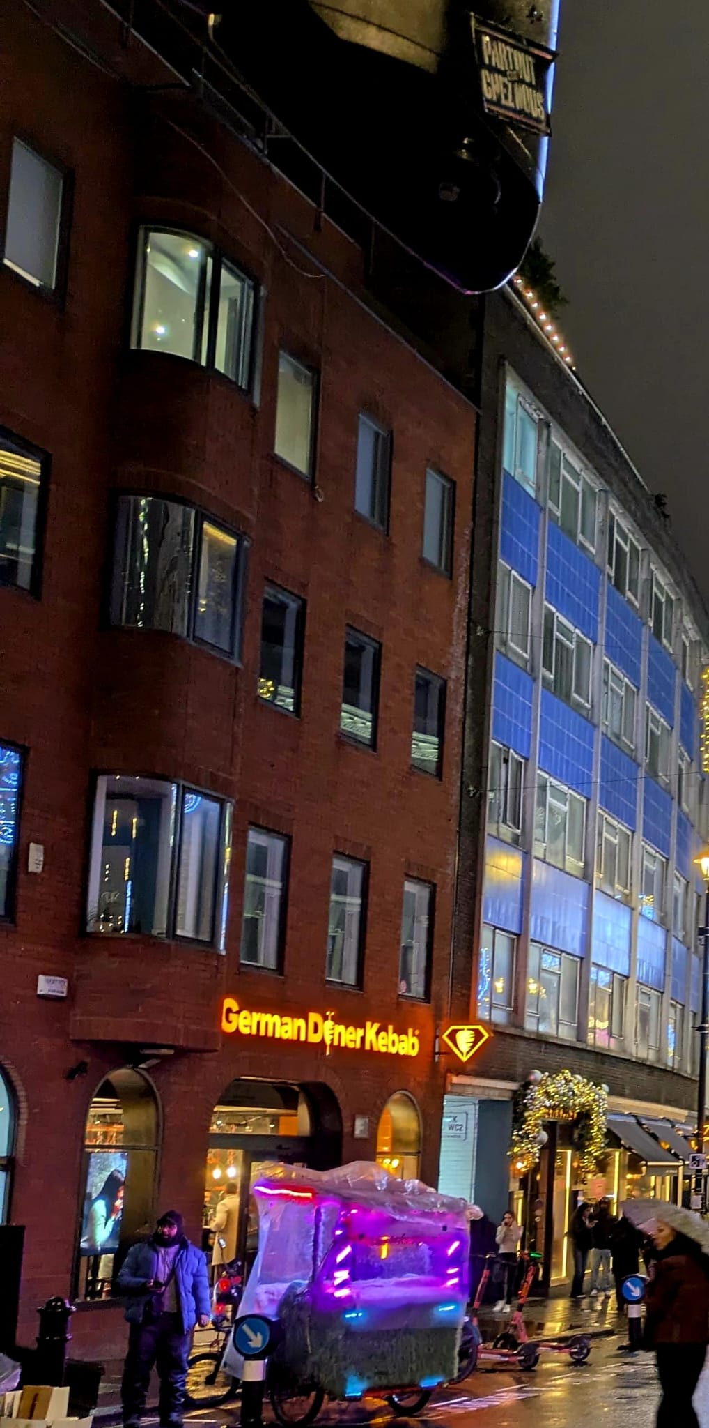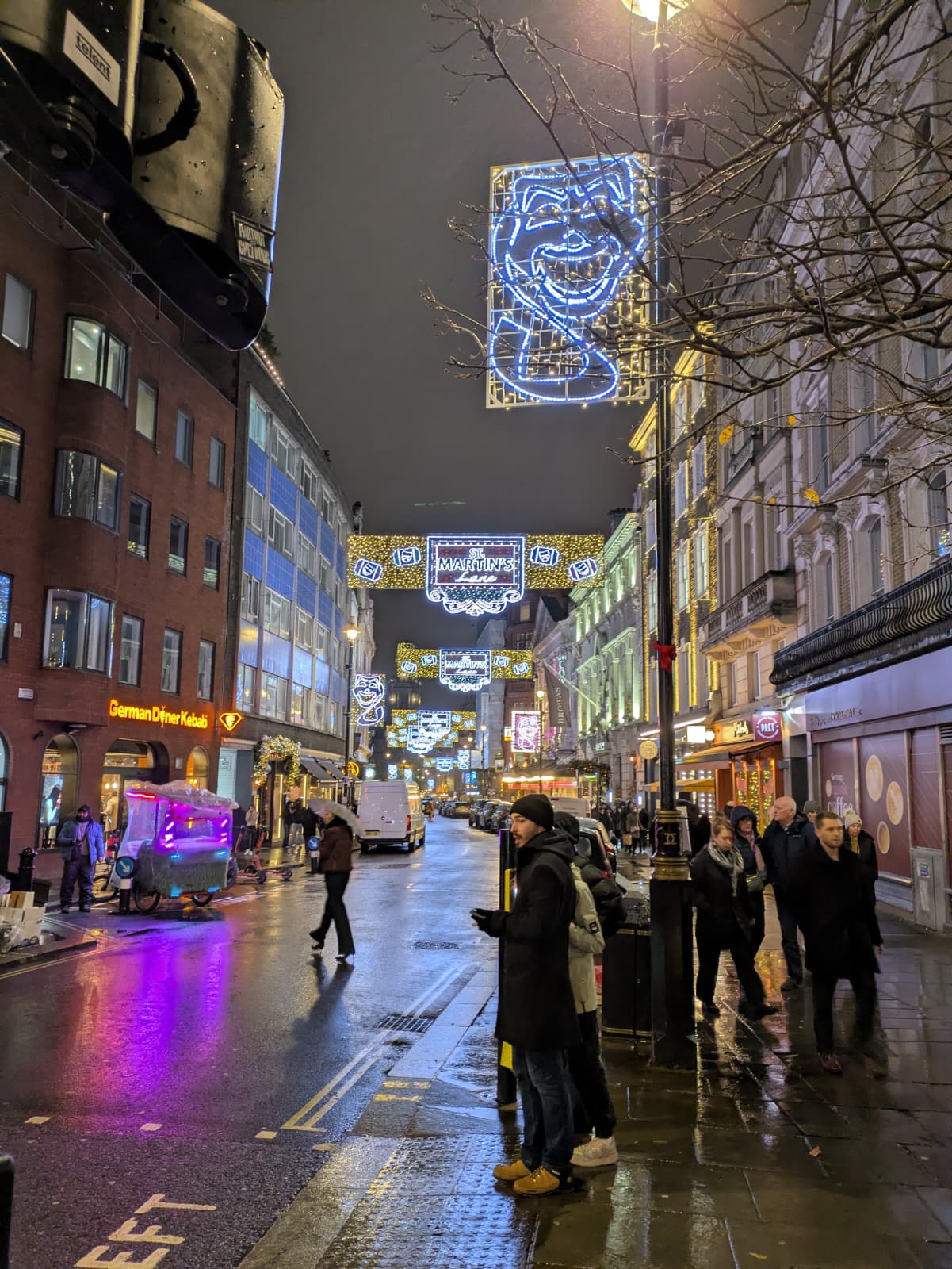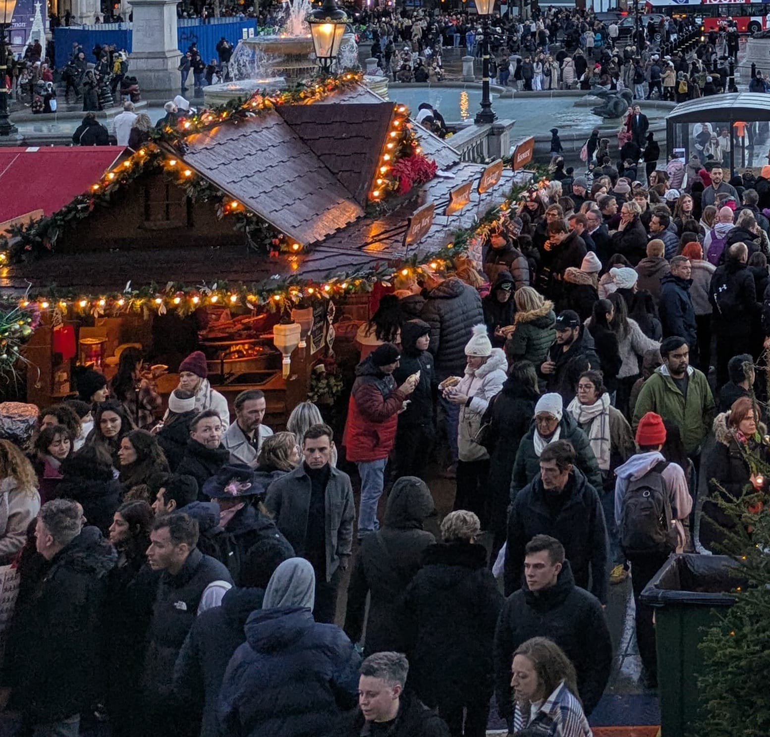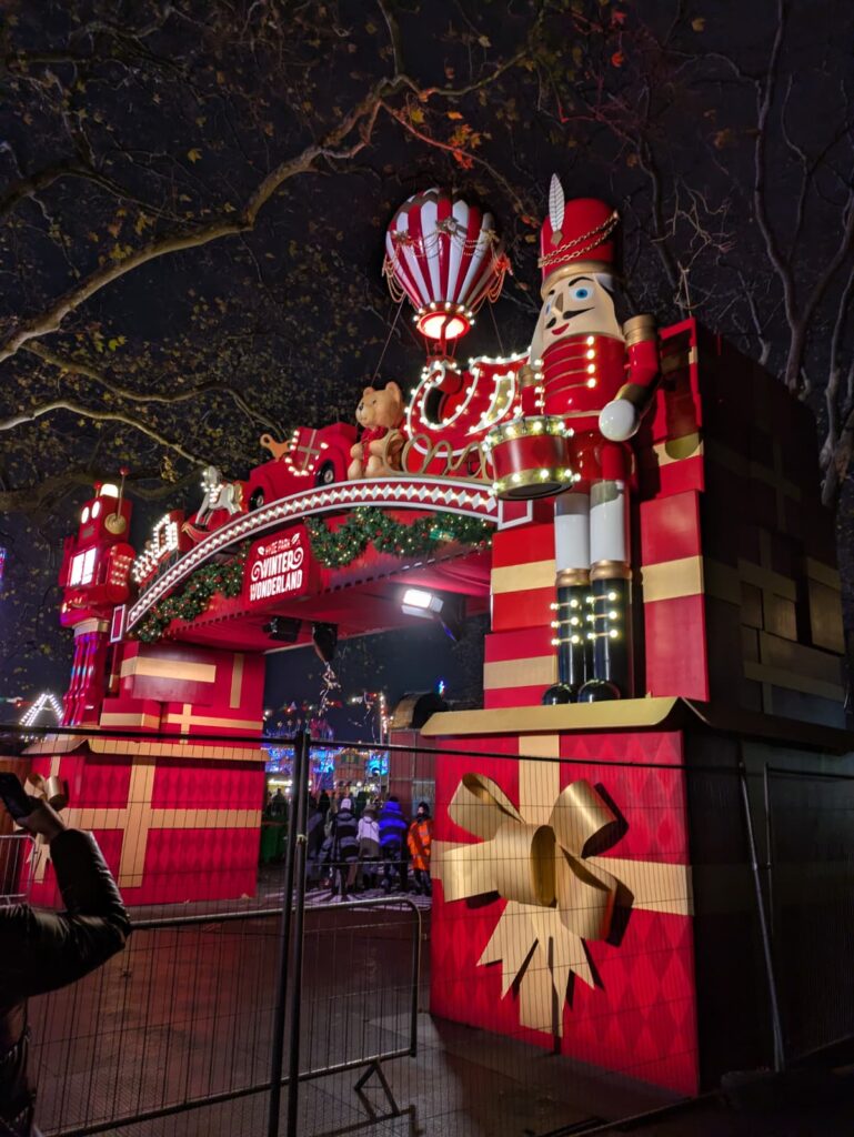 Un ciel blanc et chargé comme on les aime, idéal pour magnifier l’éclat des enluminures dans la nuit londonienne.